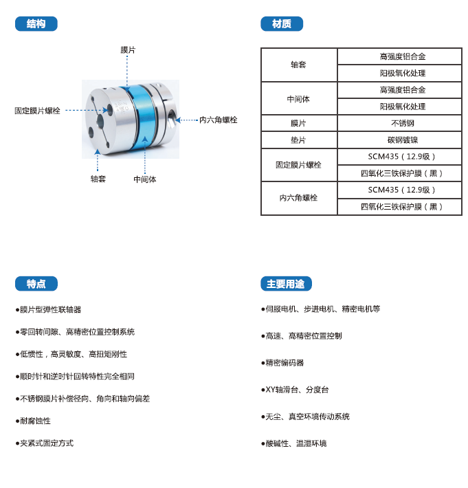 SFP-C系列聯(lián)軸器采用高強(qiáng)度鋁合金材料,經(jīng)過陽極氧化處理,廣泛用于伺服電機(jī)、步進(jìn)電機(jī)、精密電機(jī)等。