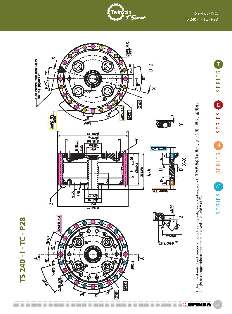 T 系列是帶有圓柱形殼體的Twinspin高精度減速機應用范圍最廣的形式。 該系列內部包含精密減速機構和高強度交叉滾子軸承,又名“軸承式減速機”。這種設計可以把負載直接安裝在減速機輸出法蘭上,省去輸出端的額外軸承。 T系列采用模塊化設計,允許用戶通過電機法蘭的方式連接各種電機。 標準的T系列減速機為半密封狀態(tài);需要用輸入法蘭和墊圈密封。SPINEA可根據(jù)客戶電機結構提供全密封帶輸入法蘭的減速機。