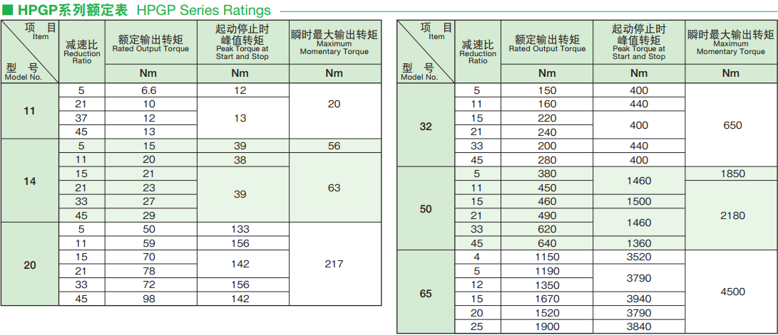 在行星齒輪減速機(jī)中追加轉(zhuǎn)矩提升的HPGP系列,高精度行星齒輪減速機(jī),可簡單的安裝到各公司的伺服電機(jī)上。 諧波發(fā)生器:橢圓形凸輪的外圈上嵌入薄型的滾珠軸承,整體呈一橢圓形狀的零件。軸承的內(nèi)圈固定于凸輪之上,外圈則介由滾珠彈性變形。一般安裝在輸入軸上。 柔輪:具有薄壁杯型的金屬彈性體的零件。杯的開口部外圈刻有齒形。柔輪的底部稱為膜,通常安裝到輸出軸上。 剛輪:剛性環(huán)狀的零件。內(nèi)側(cè)上刻有與柔輪同樣大小的齒形,且比柔輪多2個(gè)齒數(shù)。一般固定在外殼上。
